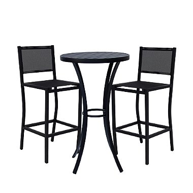 Fabricado com estrutura em alumínio reforçado e acabamento em pintura eletrostática, o conjunto é altamente resistente ao sol, chuva e umidade, não enferruja e possui longa durabilidade. O assento e encosto em tela sling oferecem conforto, ventilação e resistência aos raios UV, não ressecando nem desbotando com o tempo.