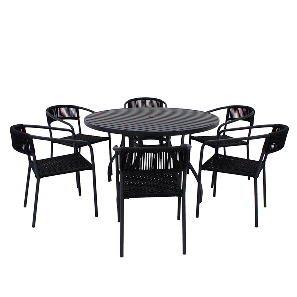 A estrutura em alumínio reforçado garante alta durabilidade e resistência à umidade, sol e maresia, enquanto as cadeiras em corda náutica oferecem conforto, ventilação e fácil manutenção. A mesa com tampo ripado em alumínio complementa o conjunto com um visual moderno e funcional.