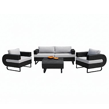O Conjunto de Sofá Completo Trama Móveis com poltronas e mesa de centro é ideal para compor ambientes elegantes e confortáveis em áreas externas e internas. Produzido em alumínio com trançado artesanal em fibra sintética, o conjunto combina durabilidade, sofisticação e conforto, sendo perfeito para jardins, varandas, áreas de piscina, pergolados ou salas de estar.